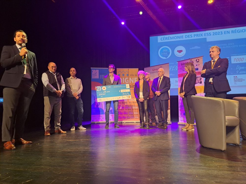 Le 9 novembre dernier, lors des Assises de l’ESS organisés par la CHAMBRE REGIONALE DE L ‘ ECONOMIE SOCIALE ET SOLIDAIRE PACA ( CRESS PACA ) à Digne les Bains, notre association Sorenis a reçu le prix régional de ESS 2023 et le prix départemental des Alpes de Haute Provence 2023, en présence du préfet des Alpes de Haute Provence, de la Région Sud – Provence-Alpes-Côte d’Azur, du Conseil Départemental 04, de la Banque des Territoires, de la MACIF, de Unicil – Groupe Action Logement PACA et des nombreux partenaires.